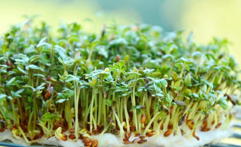 Cress is another juicy and easy-to-grow veggie with a unique peppery flavor and is often grown throughout the year. Cress is best grown in a shallow tray lined with wet paper towels. You simply need to sprinkle the seeds on the surface of the soil and cover it with plastic wrap. The cress will sprout within a few days and will be ready to harvest when the leaves are about 2 inches in size.